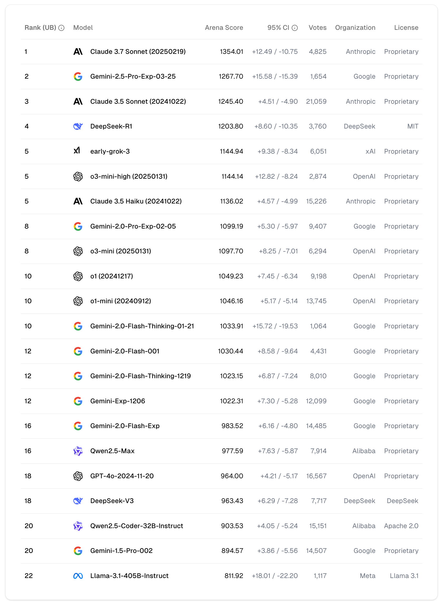 而面对众多相同 RPM 的模型,我们会想使用最好的,对于不同模型在编码上的能力,我们可以在 https://web.lmarena.ai/leaderboard (opens new window) 上查看排名。